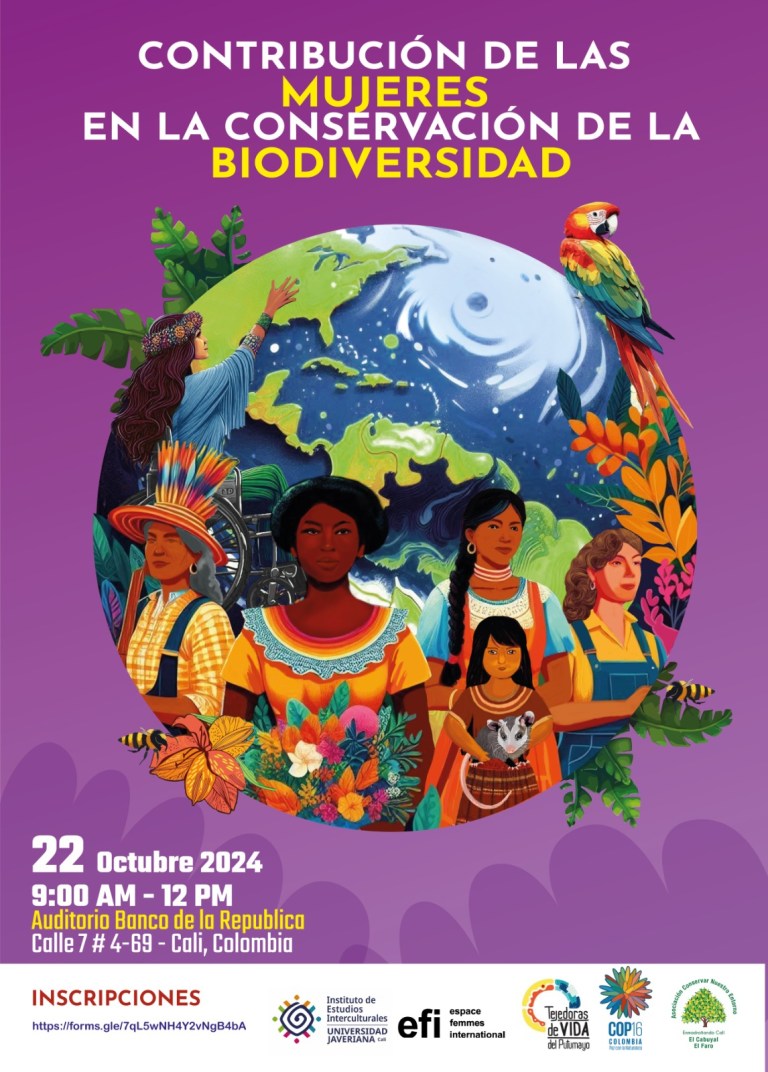 Generar un espacio de intercambio de conocimientos y experiencias entre mujeres diversas —procedentes de distintas regiones de Colombia y de los países participantes en la COP16— reconocidas por su liderazgo en la conservación de la biodiversidad en sus territorios, regiones y a nivel global. Se busca ampliar redes de trabajo, compartir aprendizajes y fortalecer el llamado global por el reconocimiento del rol trascendental de las mujeres y niñas en la protección de la biodiversidad, así como la movilización de recursos financieros y políticos para hacer efectiva esta labor.