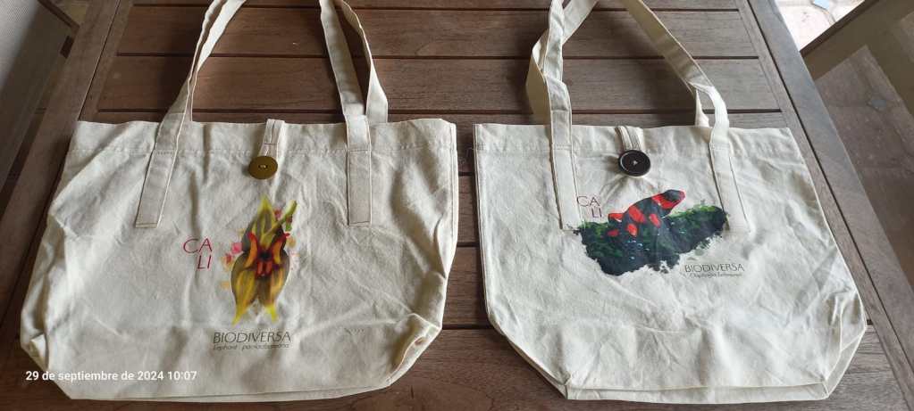 Los 400 bolsos fueron adquiridos por la Secretaria de Turismo e impresos con el logo de la campaña de promoción turística lanzada durante la COP16 “Cali es donde debes estar”. Estos bolsos fueron distribuidos como souvenir por parte de la secretaría de tursmo de Cali a invitados/as especiales que asistieron a la COP16